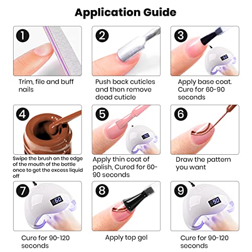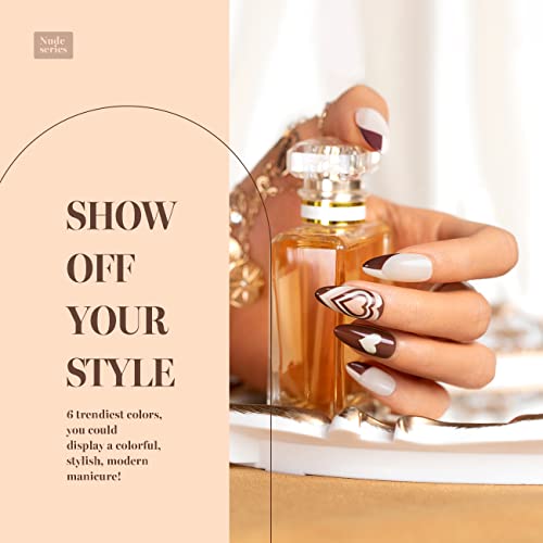 RARJSM Nail Art Gel Liner Nude Color 6pcs Set Nude Pink Brown Skin Tone Painting Striping Gel Nail Polish UV LED Curing Requires Soak off 8ml Build in Thin Sharp Brush Home DIY Salon Swirl Nail Design