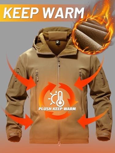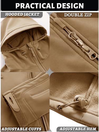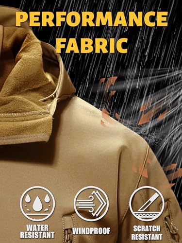 TACVASEN Men's Special Ops Military Tactical Rain Jackets Winter Warm Fleece Softshell Hooded Raincoat Snowboard