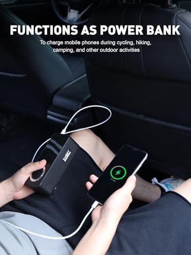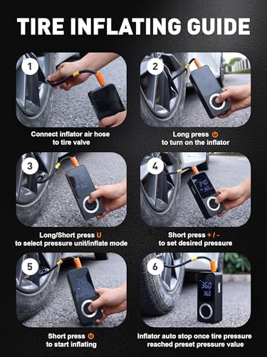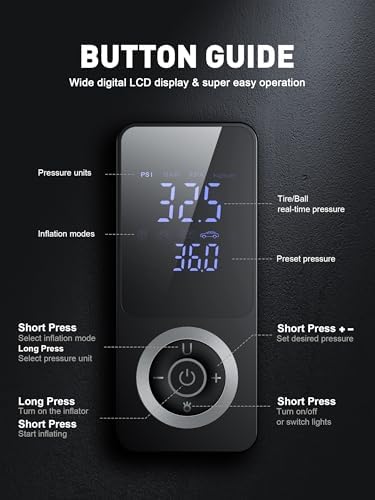 SMART JERRY - Tire Inflator Portable Air Compressor Cordless Mini Bike Tire Pump with Gauge Dual-Power Electric 12V Air Compressor for Auto, Motorcycles, Bikes, Balls Fast Inflation Max 150 PSI
