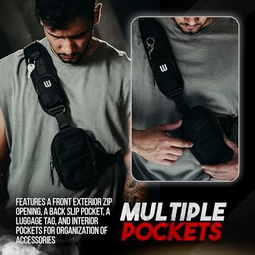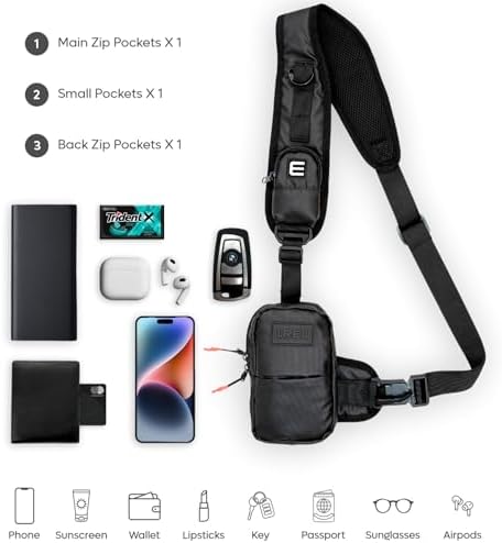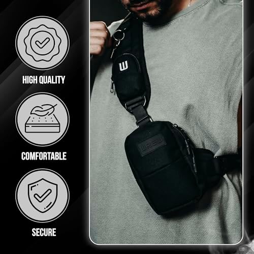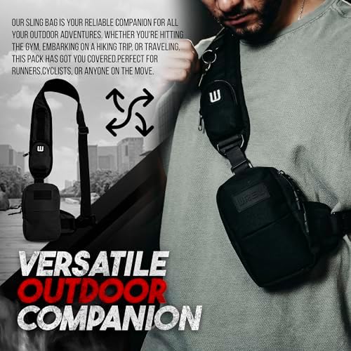 WREW Small Sling Bag for Men-Cross body bag with Shoulder Straps,Mini Sling Crossbody bag for Women-Travel Backpack for Hiking,Daypack Multipurpose Over the Shoulder Chest Bags with Keyholder(Black)