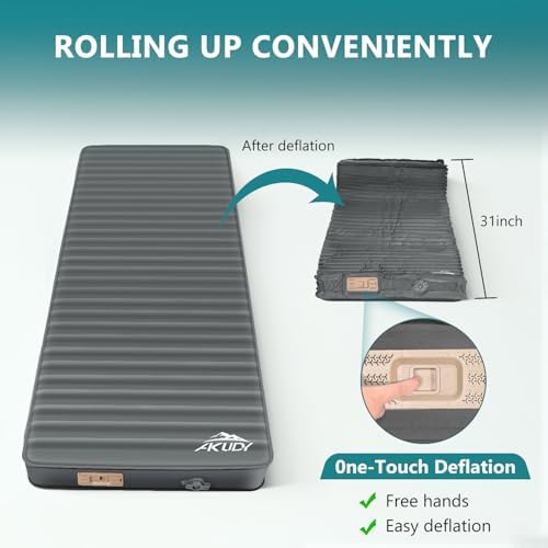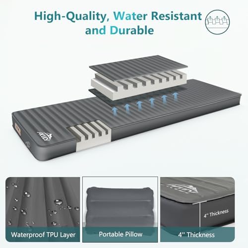 AKUDY Self Inflating Sleeping Pad with Electric Pump, 4" Ultra-Thick Memory Foam Camping Pad with Pillow, 9.5 R-Value Insulated Camping Mattress, Grey