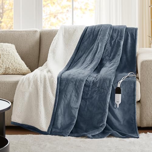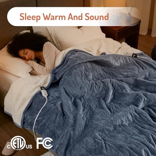Degrees of Comfort Heating Blanket \\ u0 Single bed size Soft Sherpa and flannel electric blanket, 6-speed heating setting, 0-hour automatic shutdown, overheat protection, ETL certification, 57.48 cm