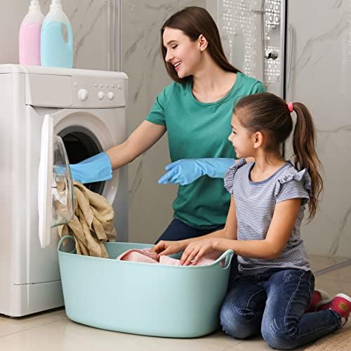 Bamllum rubber cleaning gloves -3 pairs of latex free kitchen cleaning gloves with cotton lining - household dishwashing gloves, non slip and waterproof (medium, blue+pink+white)