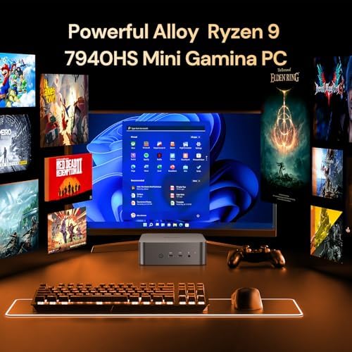 Reatan Alloy 9 Mini Gaming PC AMD Ryzen 9 7940HS(up to 5.2GHz) 32GB DDR5 1TB SSD 5600 MHz RAM, Desktop Mini Computers,Radeon 780M Graphics,Quad Display 2.5Gbps LAN,2xHDMI 2.1,8K USB 4.0 Wi-Fi 6E\/BT5.