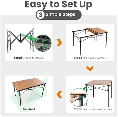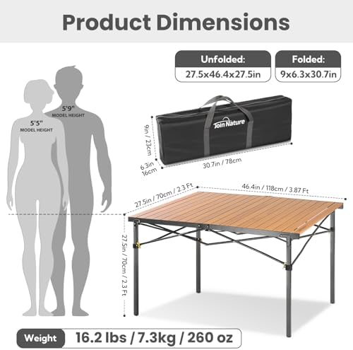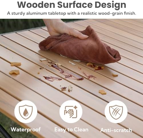 Portable Outdoor Camping Table Large for 2-6 Person - Foldable Camp Table with Aluminum Roll-Up Top & Carry Bag for BBQ, Tailgating, Backyard, 220 Lbs Capacity, Stable & Sturdy (Natural)