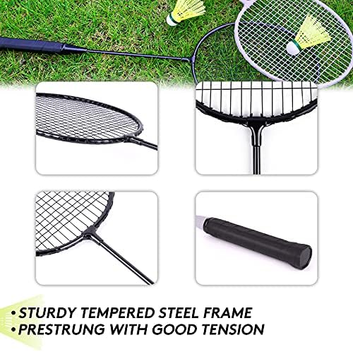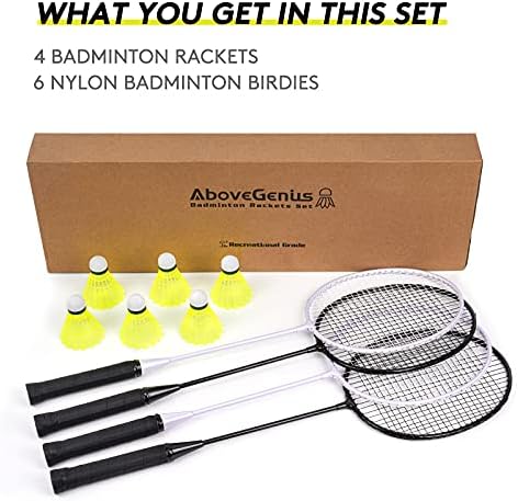 AboveGenius Badminton Rackets Set with 6 Shuttlecocks, Lightweight Badminton Set of 4 for Outdoor Backyard Games, Racquets with Durability for Beginners and Casual Players