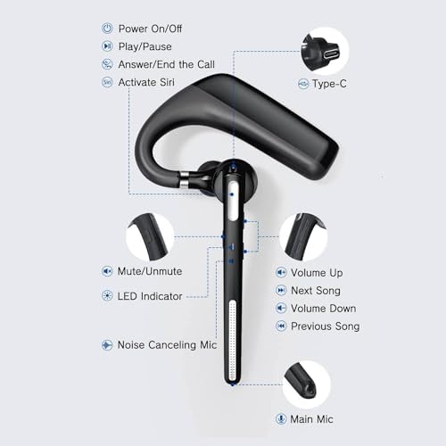 Bluetooth Headset V5.4, Wireless Bluetooth Earpiece with CVC8.0 Dual Mic Noise Cancelling, 110 Hours Talktime Hands-Free Headphones for Cell Phone, iPhone and Android, for Trucker and Business Use