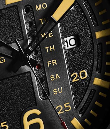 Stuhrling Original Mens Leather Watch -Aviation Watch, Quick-Set Day-Date Leather Band with Steel Rivets,