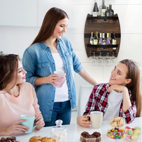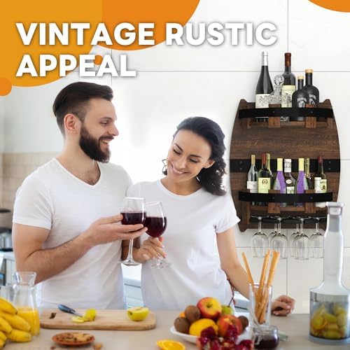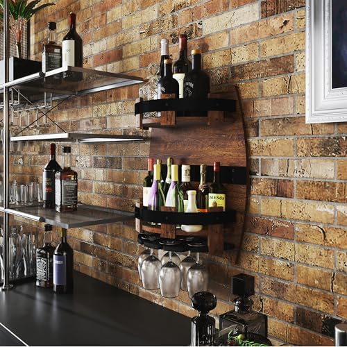 Gtouse Wooden Wine Rack Barrel,Vintage Wine Rack Wall Mounted Champagne Bottle Holder, Gift for Wine Lover,Drinks Cabinet Shelf for Wein, Whiskey, Beer