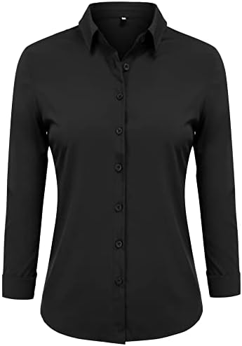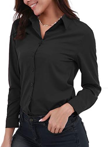 Gemolly 女式基本款系扣衬衫长袖加大码简约弹力正式休闲衬衫衬衫