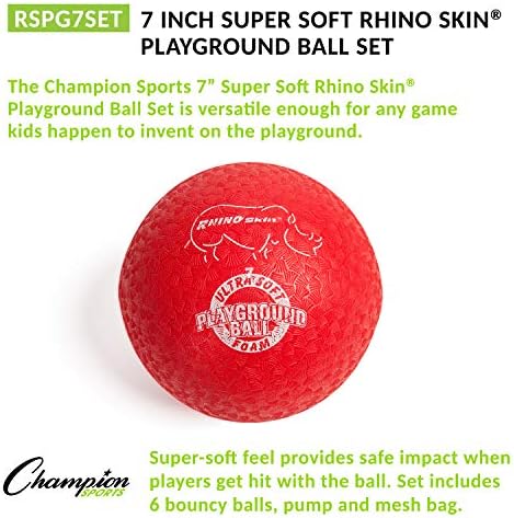 Champion Sports Super Soft Playground Ball Set \u2013 Rhino Skin® Foam Inflatable Balls for Indoor & Outdoor Play Durable, Lightweight & Safe for All Ages, Set of 6 with Pump & Mesh Bag