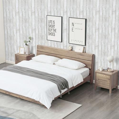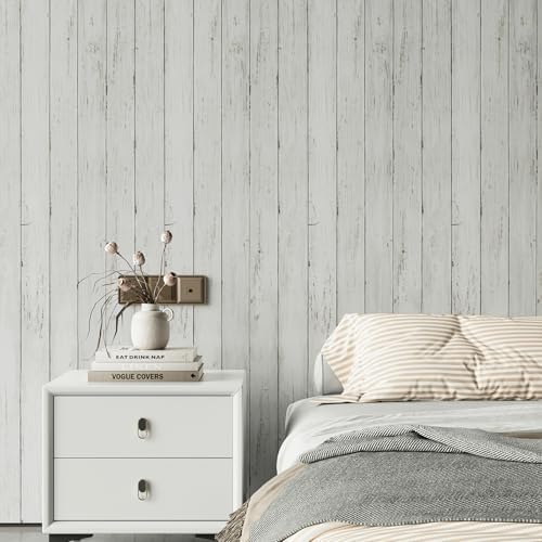 Abyssaly Peel and Stick Wallpaper 17.7" X 118" White Gray Wood Shiplap Contact Paper Self-Adhesive Removable Decorative Wall Covering Vintage Wood Plank Film for Home Decoration