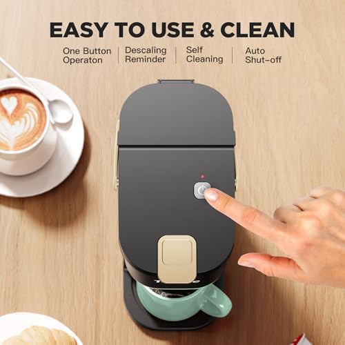 Tastyle Single Serve One Cup Coffee Maker, for K Cups and Grounds, Mini Coffee Maker with Portable Handle, 6 to 12 Oz Brew Size, for Travel, Camping, Office, RV and Dorm, 120V, Black and Gold
