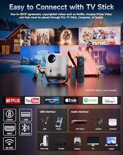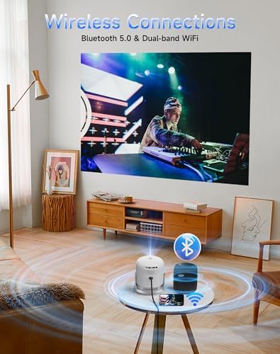 400ANSI Home Projector, WiFi 6 and Bluetooth, with Speaker 4K Decoding and 1080P Output One-Touch Focus 360° Rotation Portable Projector, Compatible with IPhone\/Android\/TV stick