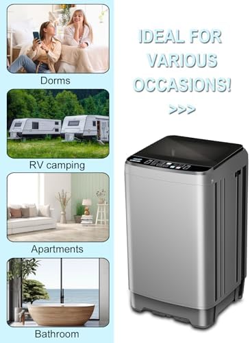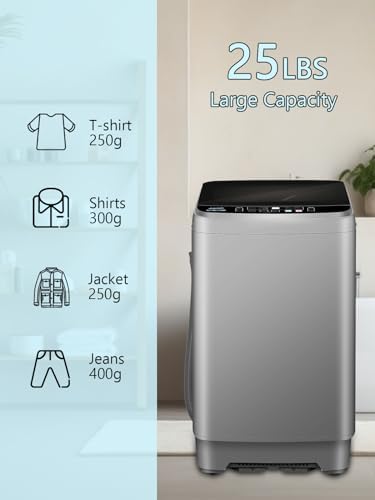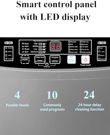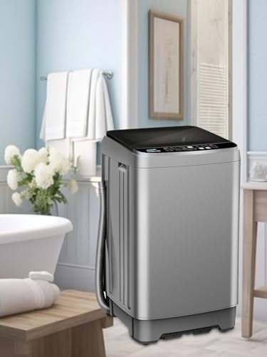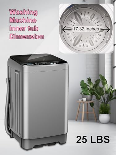 25 lbs Portable Washer Drain Pump, 10 Programs & 8 Water Levels, KRIB BLING Full Automatic Washing Machine with LED Display, Ideal for Camping, Apartment, Dorm, Dark Grey