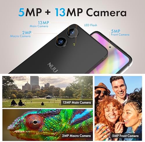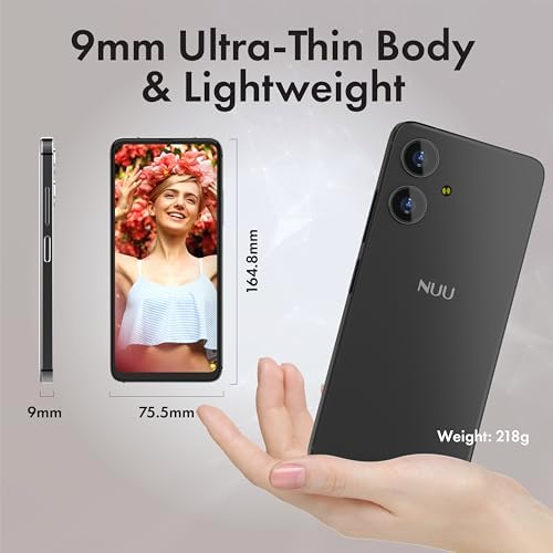 NUU N10 Basic Cell Phone for T-Mobile, Mint, Metro, Qlink, Tello and More 4GB\/128GB, Perfect for Teenagers, Dual SIM 4G, Octa-Core 6.6" 90Hz HD+, Unlocked Phones Android Phone 14, US Warranty (Bl