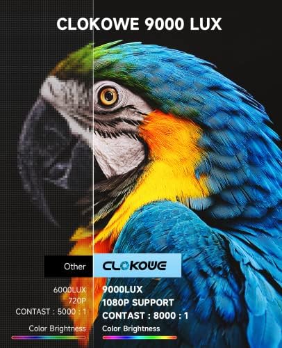 Mini Projector, CLOKOWE 2024 Upgraded Portable Projector with 9000 Lux and Full HD 1080P, Movie Projector Compatible with iOS\/Android Phone\/Tablet\/Laptop\/PC\/TV Stick\/Box\/USB Drive\/Game Console