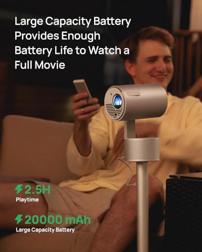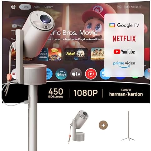 XGIMI MoGo 3 Pro NEW Outdoor Projector with PowerBase Stand, 2.5hrs Battery, Google TV with Licensed Netflix, Build-in Adjustable Stand, 450 ISO Lumens, ISA 2.0, 2 x 5W Harman Kardon