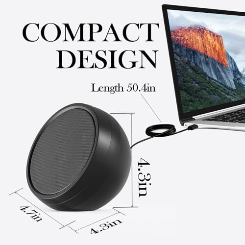 ABRRU USB Computer Speaker for Laptop, External Speakers for Desktop Computer with Crystal Clear Sound, Rich Bass and Volume Buttons, Plug-N-Play (Black)