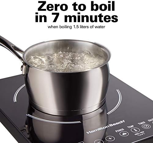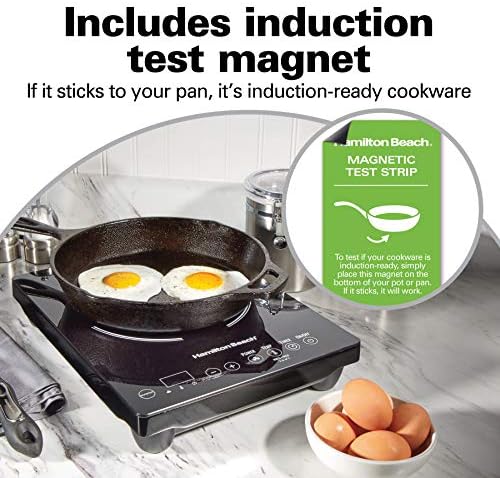 Hamilton Beach Portable Single Induction Cooktop Countertop Burner Hot Plate with Fast Heating Mode, 1800 Watts, 10 Temperature Settings up to 450F, Black (34104)