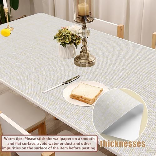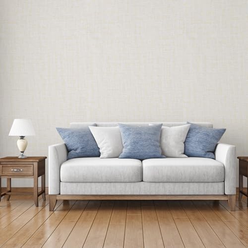 Yancorp 10 foot textured fabric, cream colored wallpaper, artificial grass cloth, beige, peel and paste, self-adhesive linen, removable wallpaper, countertop pad