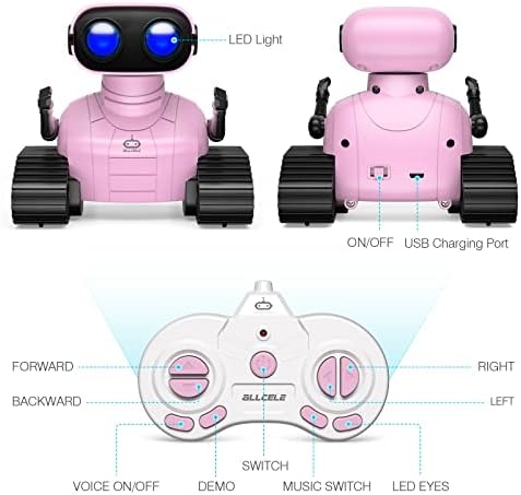 ALLCELE Girls Robot Toy, Rechargeable RC Robot for Kids, Remote Control Toy with Music and LED Eyes, Gift for Children Age 3 Years and Up - Pink