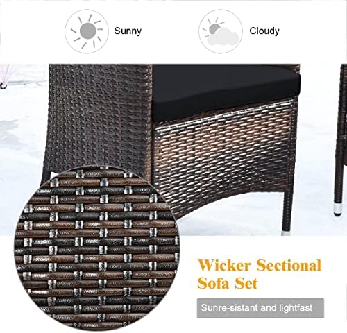 Goplus 4-Piece Rattan Patio Set, Outdoor\/Indoor Wicker Conversation Set for Pool, Backyard, Lawn, Wicker Chairs and Sofa with Soft Cushion, Rattan Furniture with Tempered Glass Coffee Table