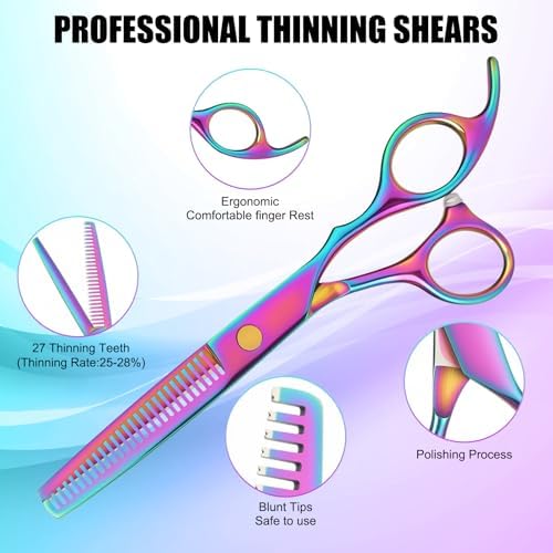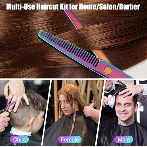 Hair Cutting Scissors Set, Professional Haircut Scissors Kit with Cutting Scissors Thinning Scissors for Barber\/Salon\/Home\/Men\/Women\/Kids\/Adults(Rainbow)