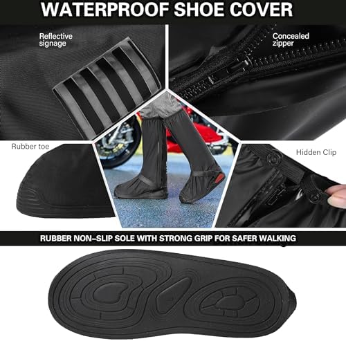 iCreek Waterproof Shoe Covers Reflective Rain Boot Foldable Non-Slip Protective Overshoes for Rainy Day, Hiking, Outdoor