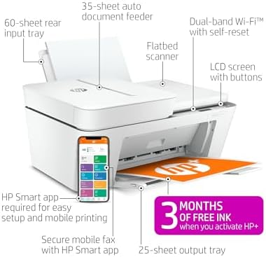 HP DeskJet 4155e Wireless Color Inkjet Printer, Print, scan, copy, Easy setup, Mobile printing, Best-for home, 3 month Instant Ink trial included, white