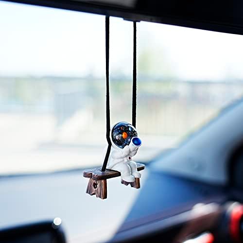 AMIORO Swinging Astronaut Car Decor Accessories Cartoon Car Rear View Mirror Hanging Ornaments (White)