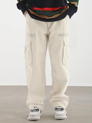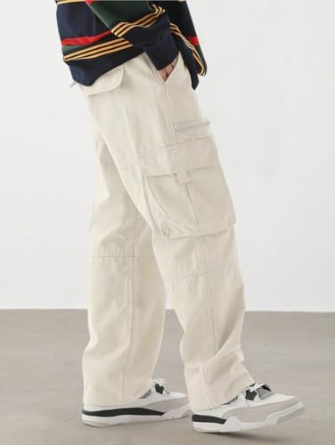ZAFUL Men's Wild Cargo Pants Loose Fit Y2K Pants Drawstring Casual Hiking Pants Pocket Zipper Design Straight Trousers
