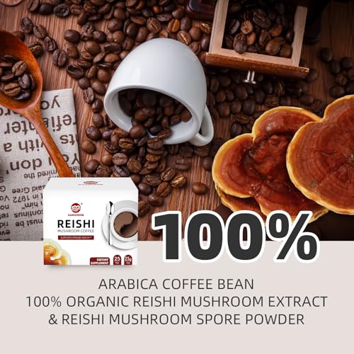 GANOHERB Reishi Mushroom Coffee Mix, Organic Instant Ganoderma Cafe with 100% Natural Ganoderma Lucidum Lingzhi Black Coffee for Stress Relief Better Focus Immune Support, Mix Flavor No Sugar 25 Bag