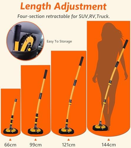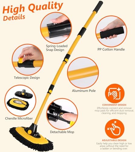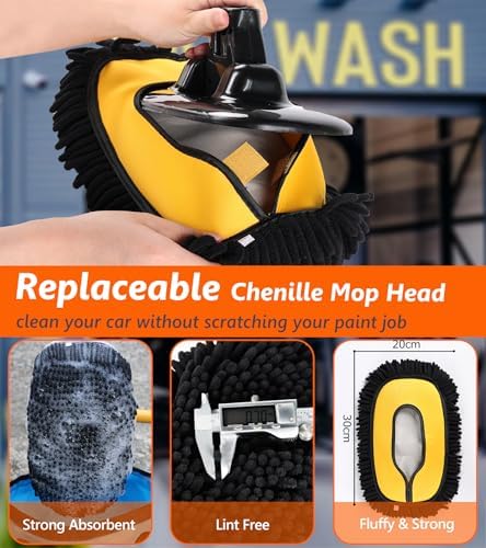 EVERRUSH 56.7" Car Wash Brush Mop Kit Microfiber Car Washing Sponge Mitt with Long Handle Car Cleaning Supplies Tools RV Washing Duster Exterior Scratch Free, Chenille Replacement Head Extension P