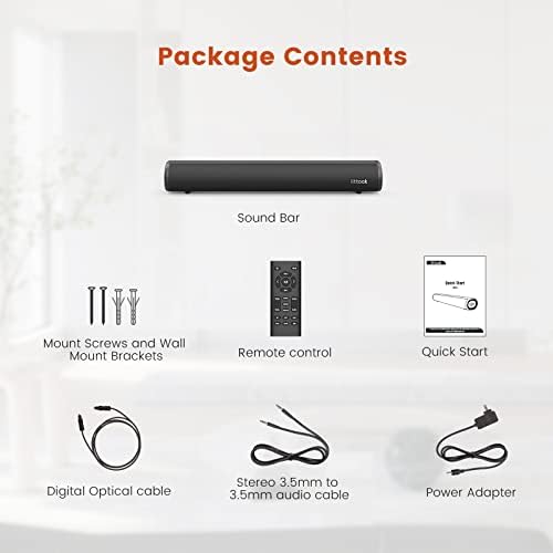 LITTOAK HDMI Sound Bar for TV, Bluetooth Small TV Soundbar Speaker, Optical\/HDMI\/Aux\/Coax\/USB\/Bluetooth Connection for TV, PC, Projectors, Includes Remote Control, 16 inch