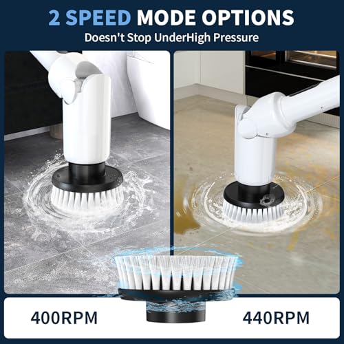 Electric Spin Scrubber - Cordless Cleaning Brush with Digital Display, 2 Speeds, 8 Brush Heads, IPX7 Waterproof, Adjustable Long Handle for Bathroom, Tub, Tile, Shower, and Car