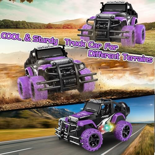 Bloolilies Rc Car, 1:20 Scale Remote Control Car for Girls with Colorful 3D Lights Off Road Rc Monster Truck Toy Vehicles for Kids Boys Toddlers 3 4 5 6 7 8-12 Years Old Birthday Gift, Purple