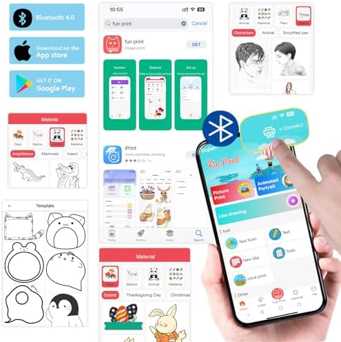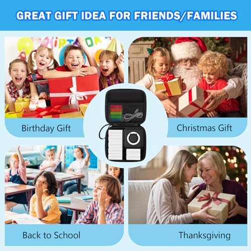 HUIJUTCHEN Black Mini Pocket Printer with Black Case, Mini Thermal Printer with 10 Rolls Thermal Paper, Mini Portable Photo Printers for Travelling, Journal, Memo, Photo, Study Notes, Shopping Lists