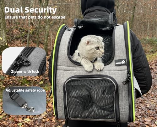 Pecute Cat Carrier Backpacks, Expandable Cat Backpack with Breathable Mesh, Pet Carrier Backpack for Cats Small Dogs Puppies Up to 17 Lbs, Dog Carrier Backpack Great for Travel Hiking Camping Outdoor