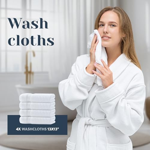 Luxury White Bath Towel Set of 8 Pieces - 100% Turkish Cotton 700 GSM Highly Absorbent Towels for Bathroom, 2 Bath Towels, 2 Hand Towels, 4 Washcloths