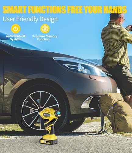 AVID POWER Cordless Tire Inflator Portable Air Compressor, 20V Rechargeable Battery Powered Car Tire Pump w\/ 12V DC Adapter, Digital Pressure Gauge, Air Pump for Car, Bike, Motorcycle, Ball