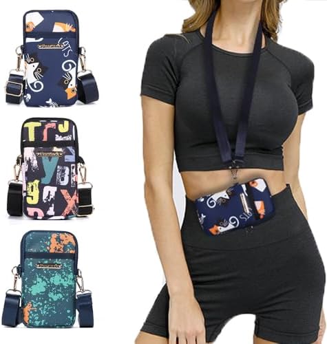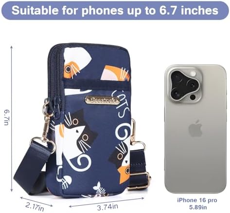 Geestock Cell Phone Purse Small Crossbody Shoulder Holsters Bags with Arm Bands Phone Key Pouch Holder for Running, Walking, Hiking & Biking (Blue Cats)