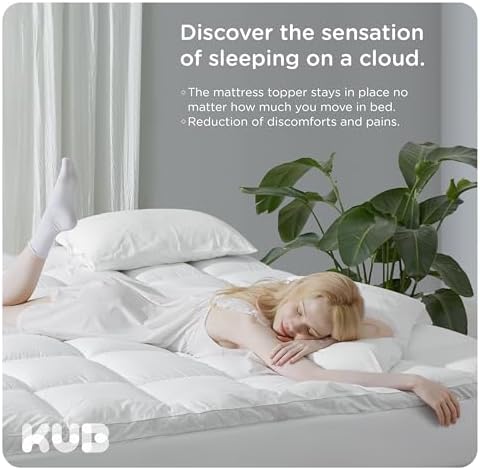 KUB Cotton Mattress Topper, Queen, Cooling Cotton Pillow Top with 8-21 Inch Deep Pocket, 3D Snow Down Alternative Fill, Breathable Fluffy Mattress Pad Cover (White, Queen 80 * 60inch)