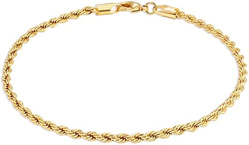 Barzel 18K Gold Plated Braided Rope Anklet for Women, 2.7 MM thick, 10 Inches long - Made In Brazil