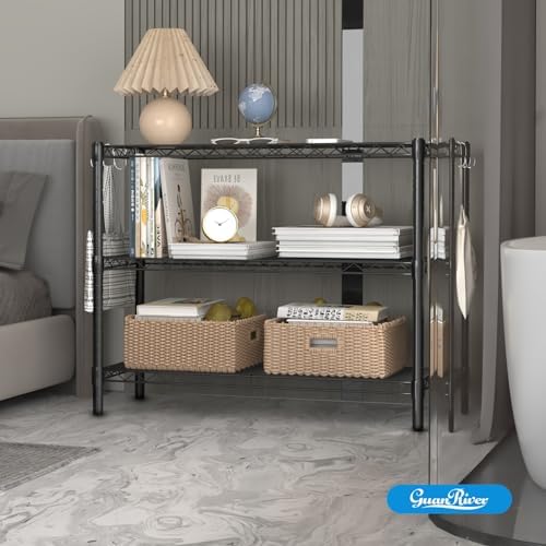 Guan River 3-Shelf Adjustable Metal Shelf Wire Shelving Unit Storage Rack Display Shelf for Office,Kitchen,Bedroom,Bathroom,Laundry,Pantry Basement,Garage(Black,36" L x 14" W x 30" H)