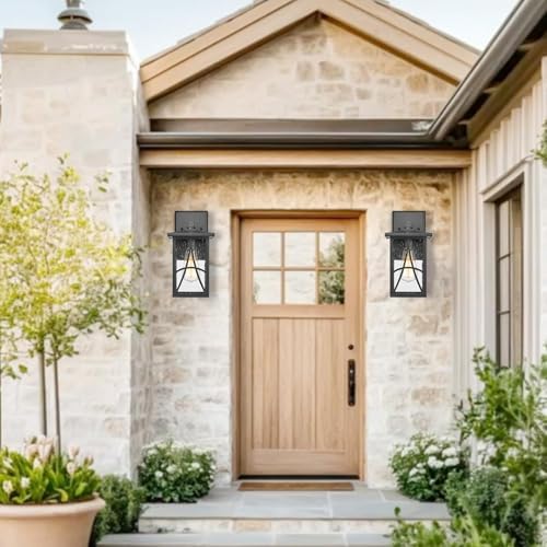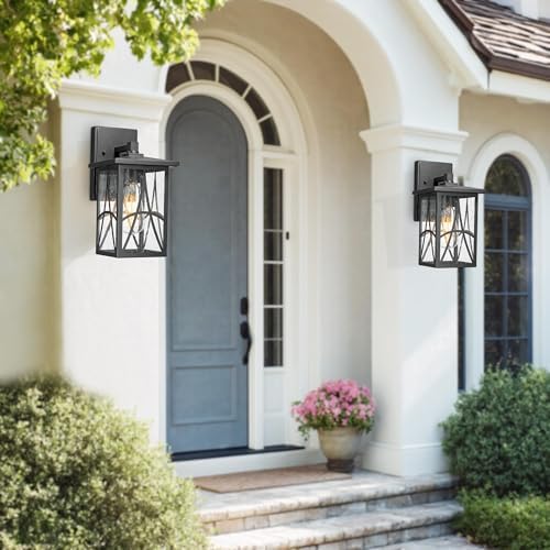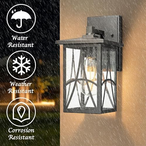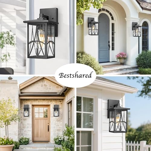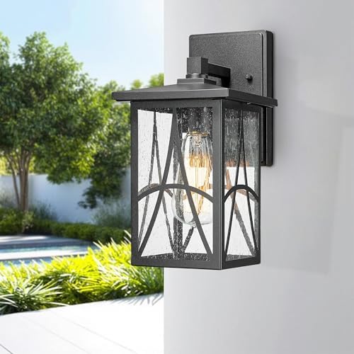 Bestshared Outdoor Wall Lantern with Seeded Glass \u2013 Waterproof Exterior Wall Light Fixture, Farmhouse Outside Sconce Lighting for Porch, Patio, Garage, Entryway (Black, 11.24 Inch Height)
