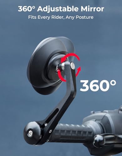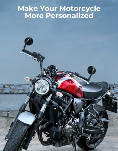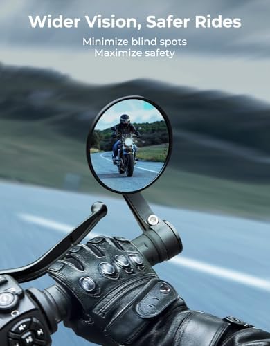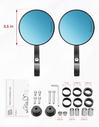 KEMIMOTO Motorcycle Bar End Mirrors, CNC Aluminum 7\/8" Handlebar Rearview Mirrors with Blue Anti-Glare Lens, Universal Fit for Motorcycles, E-bikes, Scooters, ATVs - Round Design for Clear &