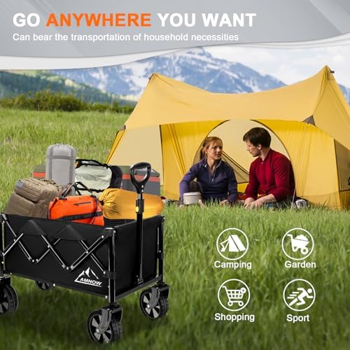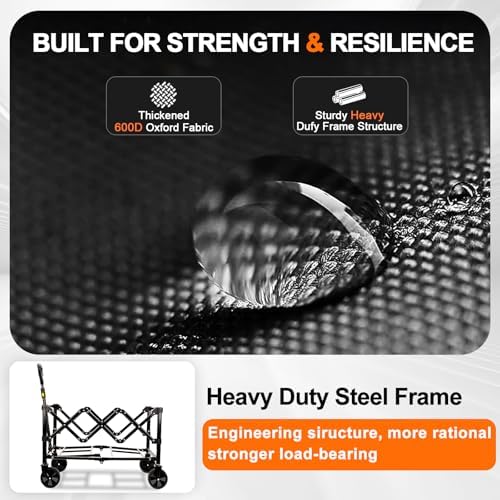 Collapsible Wagon Cart with Wheels Foldable, Folding Wagons Carts with Silent Universal Wheels, Large Grocery Cart On Wheels, Heavy Duty Utility for Shopping Beach Sports Fishing Camping, Black