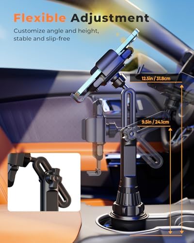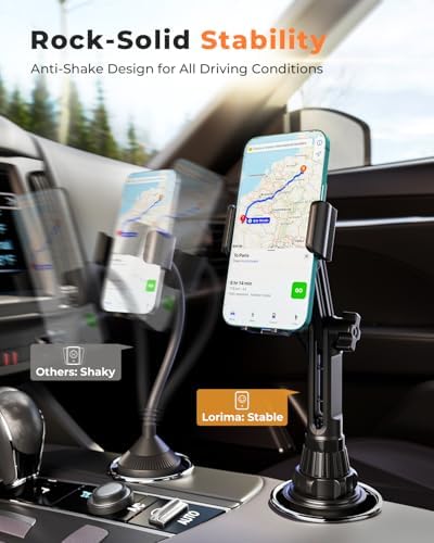 Lorima Cup Phone Holder for Car, Universal Adjustable Cup Holder Phone Mount Compatible with iPhone, Samsung, Huawei, LG, Sony, and Nokia