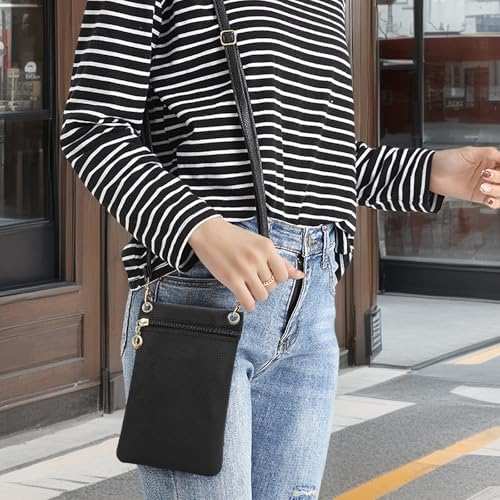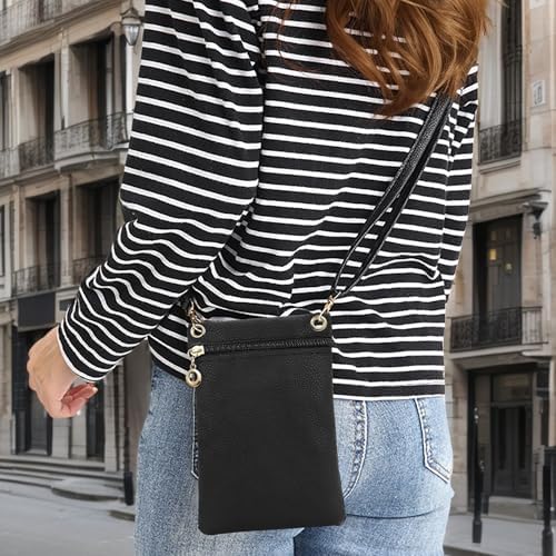 Soft PU Leather: The cell phone crossbody bag is made of soft PU leather, which has a lychee-grain texture. The wear-resistant PU leather and excellent workmanship make the cross body phone purse last a long time Smooth Zipper: This cell phone bag is closed with a smooth zipper that can be used repeatedly without jamming. The zipper pull is a unique metal ring, which makes the zipper more convenient to use Practical and Portable: Our small phone purse is 18.5 * 12.5 * 1 cm in size and weighs about 75 g. It is lightweight and can store mobile phones, cards, keys, small lipsticks, and other small items Soft Shoulder Strap: The crossbody phone bag is equipped with a detachable soft shoulder strap. The shoulder strap is connected to the bag through the metal swivel clasp hooks, and its maximum length is about 125 cm Widely Used: The small over the shoulder purse has black and pink to choose from, black is classic and pink is cute. It is suitable for shopping, traveling, dating, parties, and so on